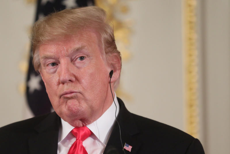 US President Donald Trump speaking during a joint news conference with Japan's Prime Minister Shinzo Abe, at Akasaka Palace in Tokyo, on May 27, 2019.