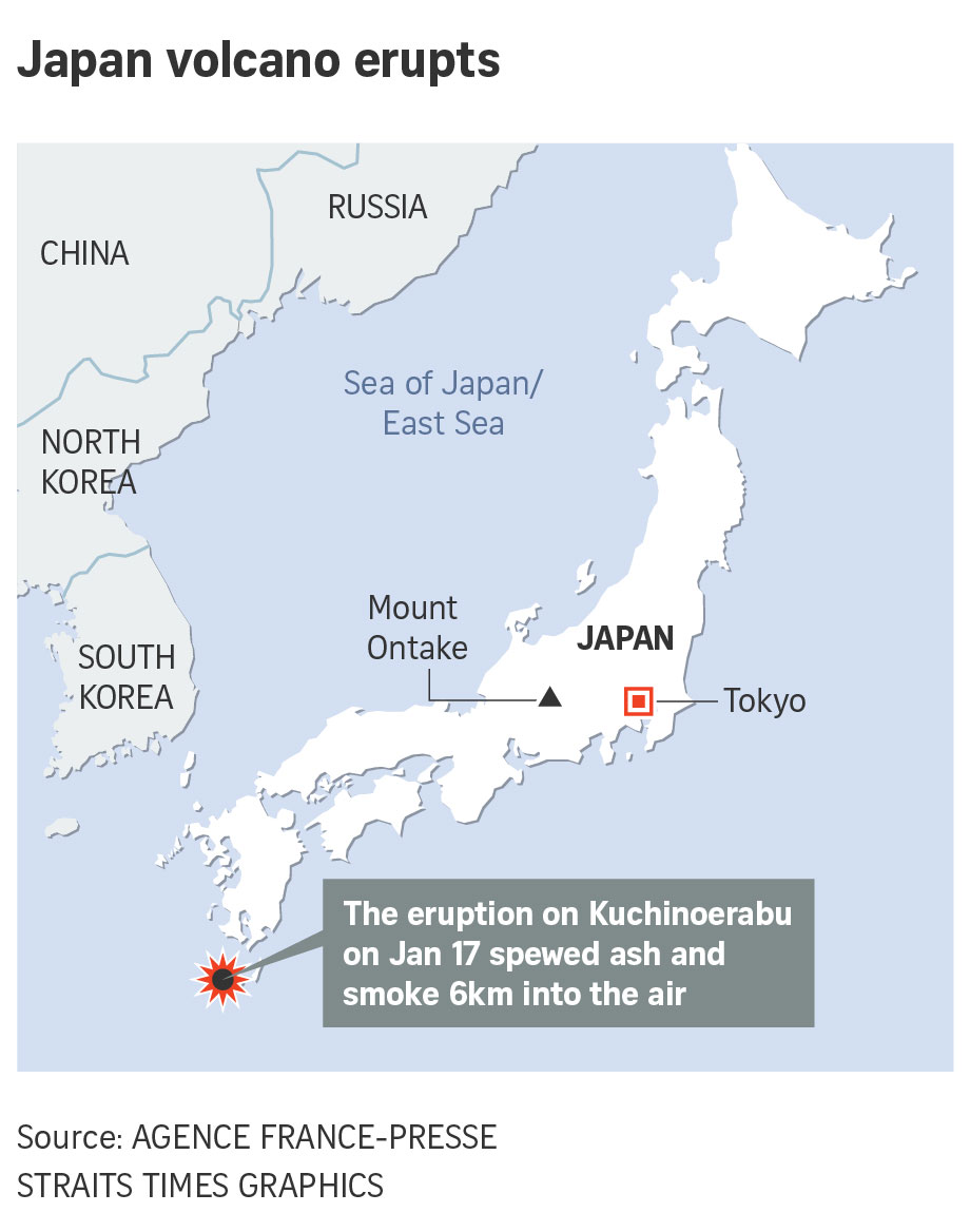 TOKYO (AFP) - A Japanese volcano erupted on Thursday (Jan 17), spewing ash and smoke 6km into the air over a small southern island.