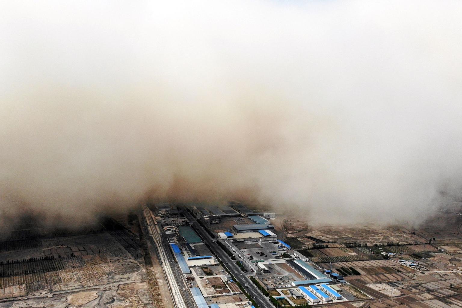 Aerial images as it struck showed an apocalyptic scene as a billowing cloud of yellow dust smothered Gansu's Linze county on Sunday (April 25).