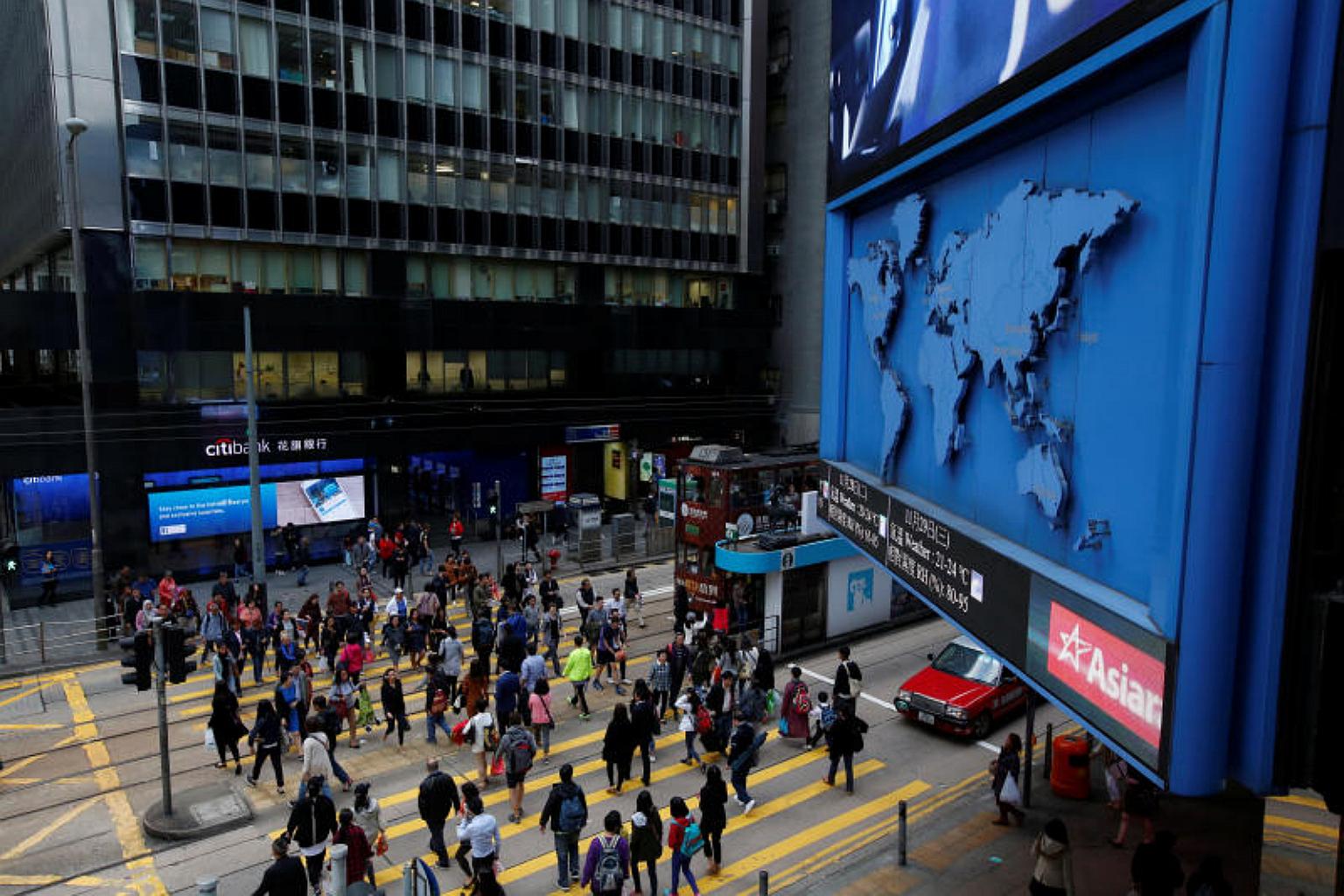 People cross Des Voeux Road Central in Hong Kong's Central district on Nov 23, 2017.