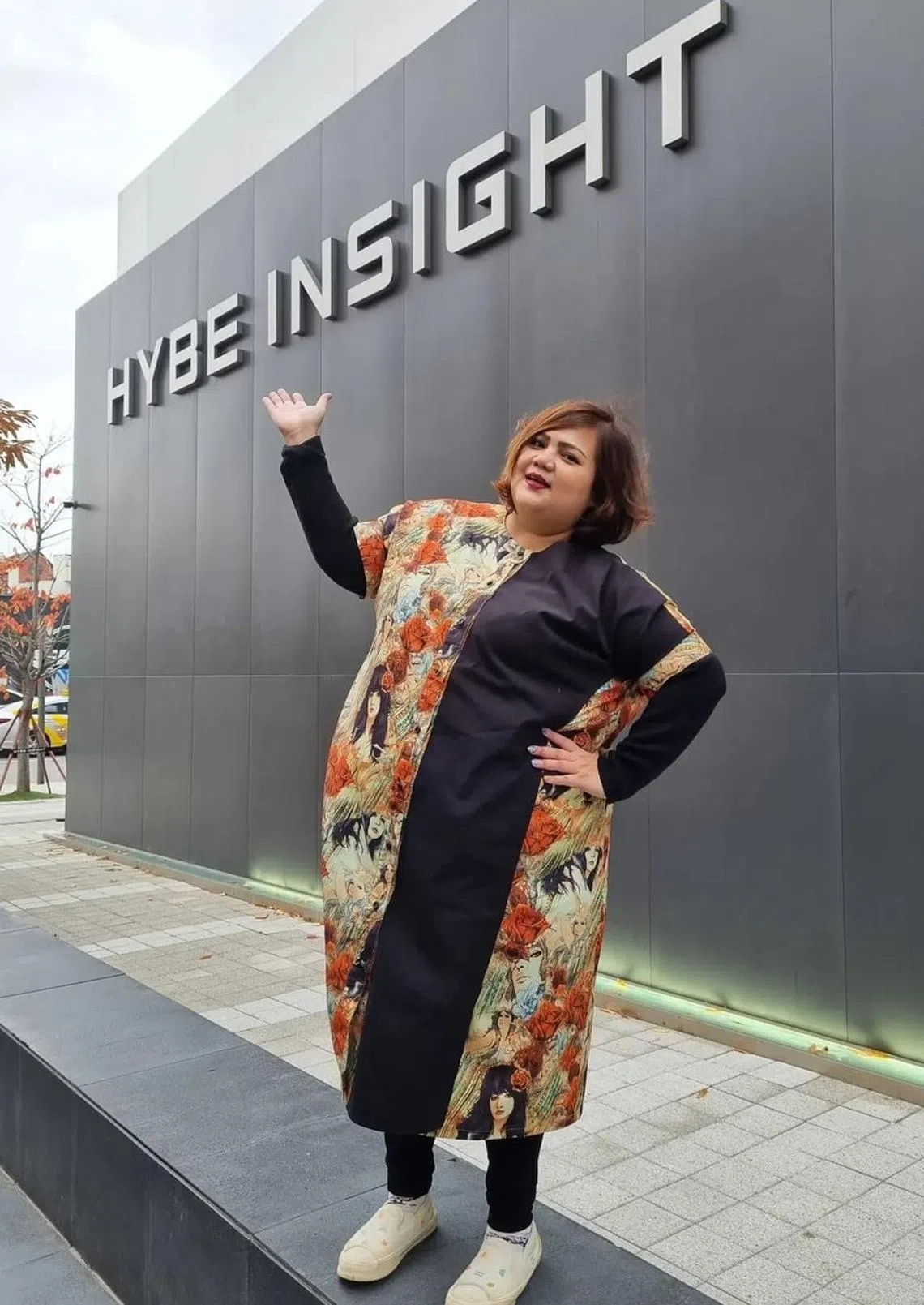 Ms Puti Desianti outside Hybe Insight Museum in Seoul in 2022. She was there with with her friends to visit an exhibition featuring BTS, who are managed by Hybe.