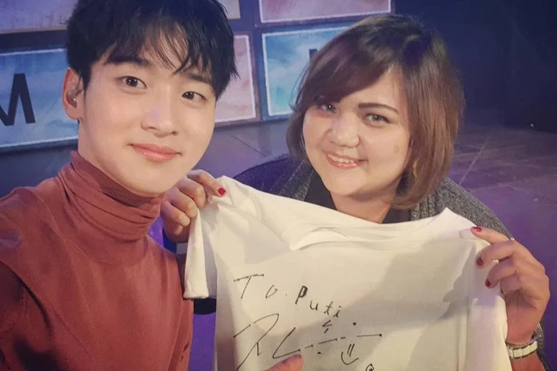 Ms Puti Desianti with South Korean actor Jang Dong-yoon during his fan meeting in Bangkok in 2020.