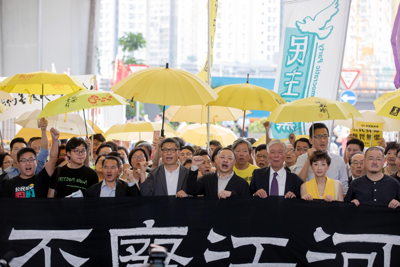 Occupy Central activists outside the West Kowloon Magistrates Court in Hong Kong, China, on April 24, 2019.