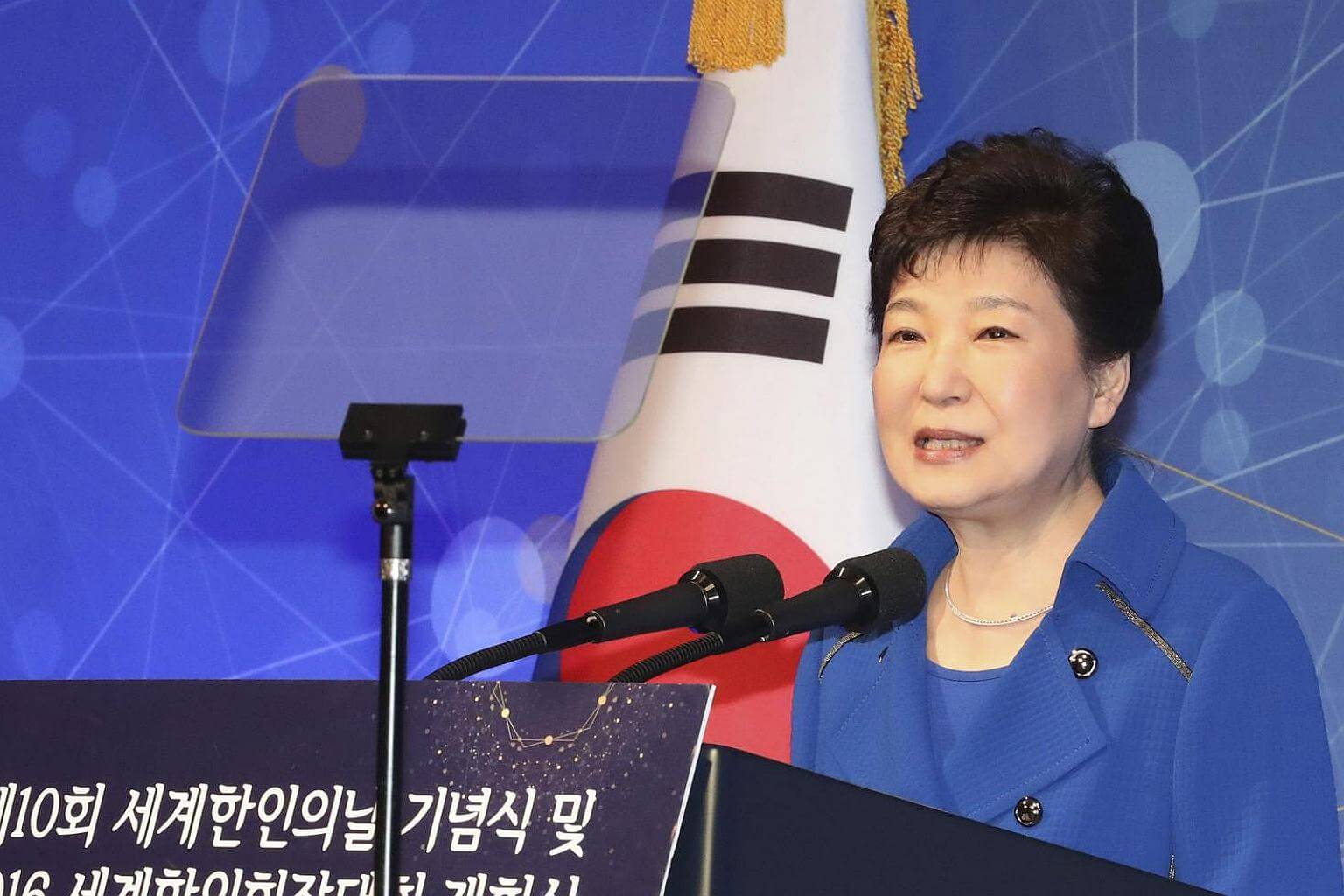South Korean President Park Geun Hye speaks at a ceremony of the 10th Korean Day in Seoul, South Korea, on Oct 5, 2016.