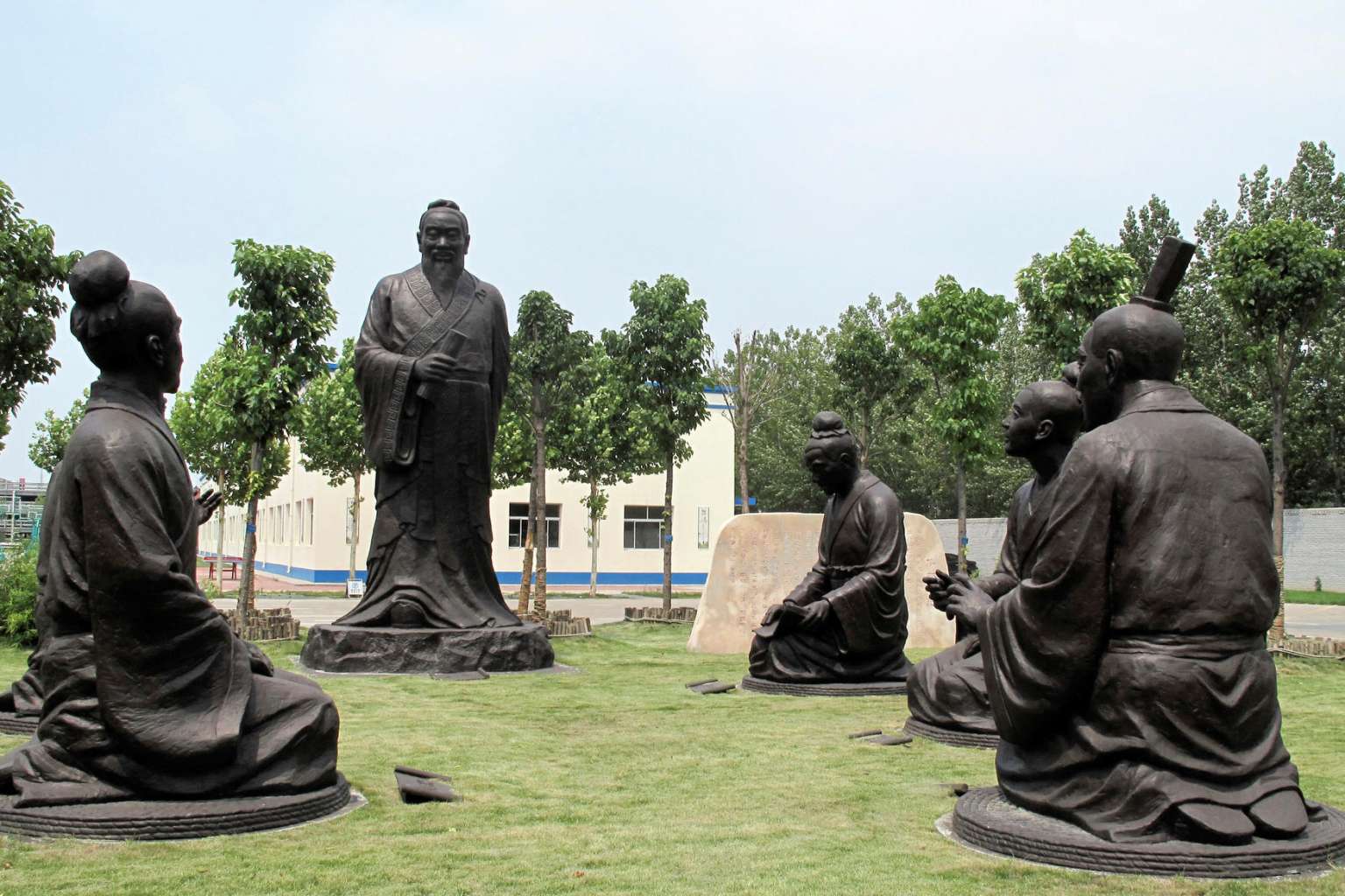 Sculptures of Confucius with his students are seen near the headquarters office building of Chambroad Holding in Boxing, Shandong Province, China, June 27.