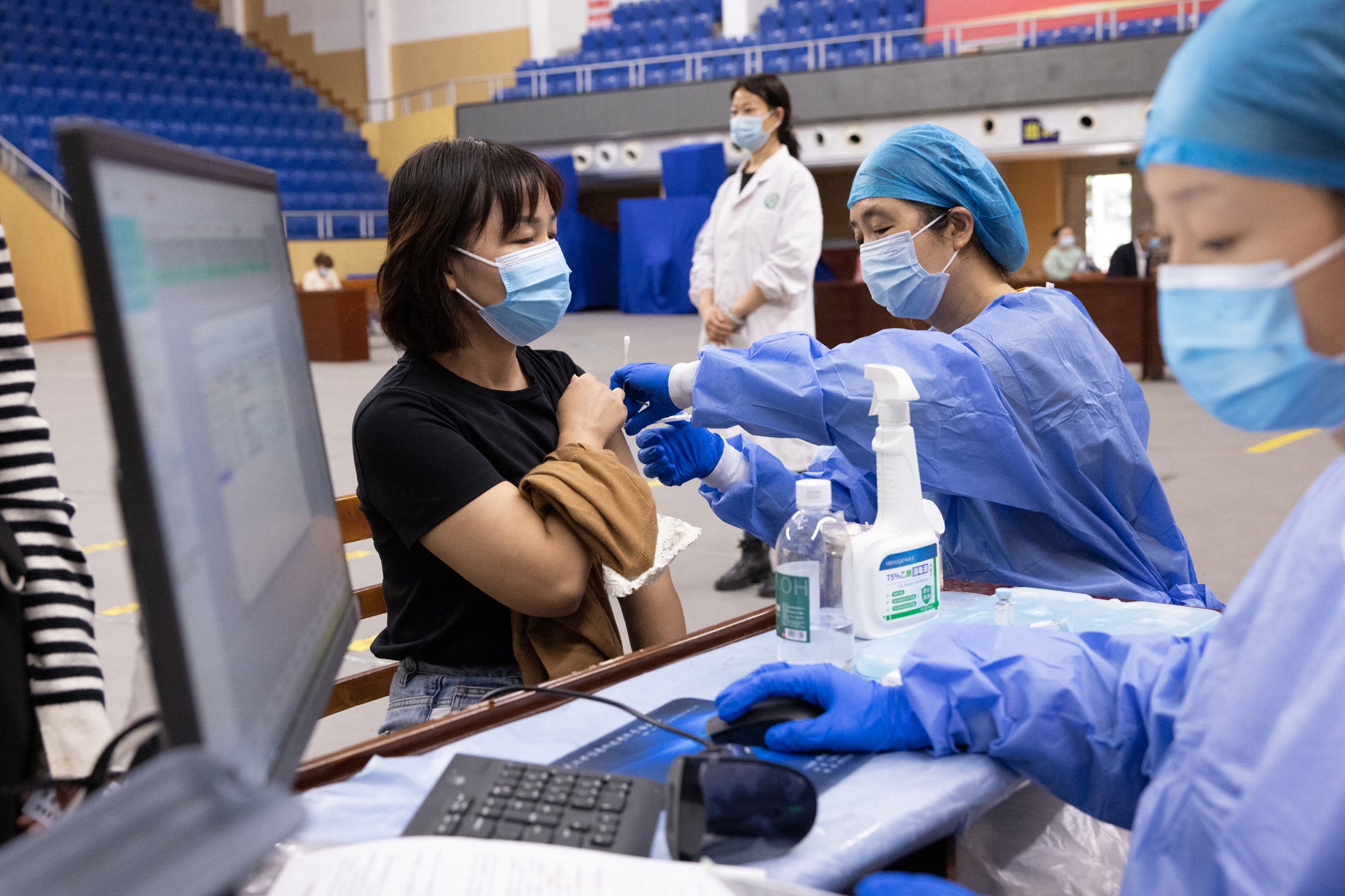 A Wuhan resident receives the Covid-19 vaccine on Oct 14, 2021. China reported 26 new domestic Covid-19 cases on Oct 24.