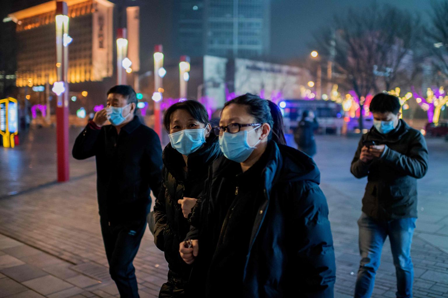 People wearing protective masks to help stop the spread of a deadly virus in the Sanlitun area in Beijing on Jan 28, 2020.