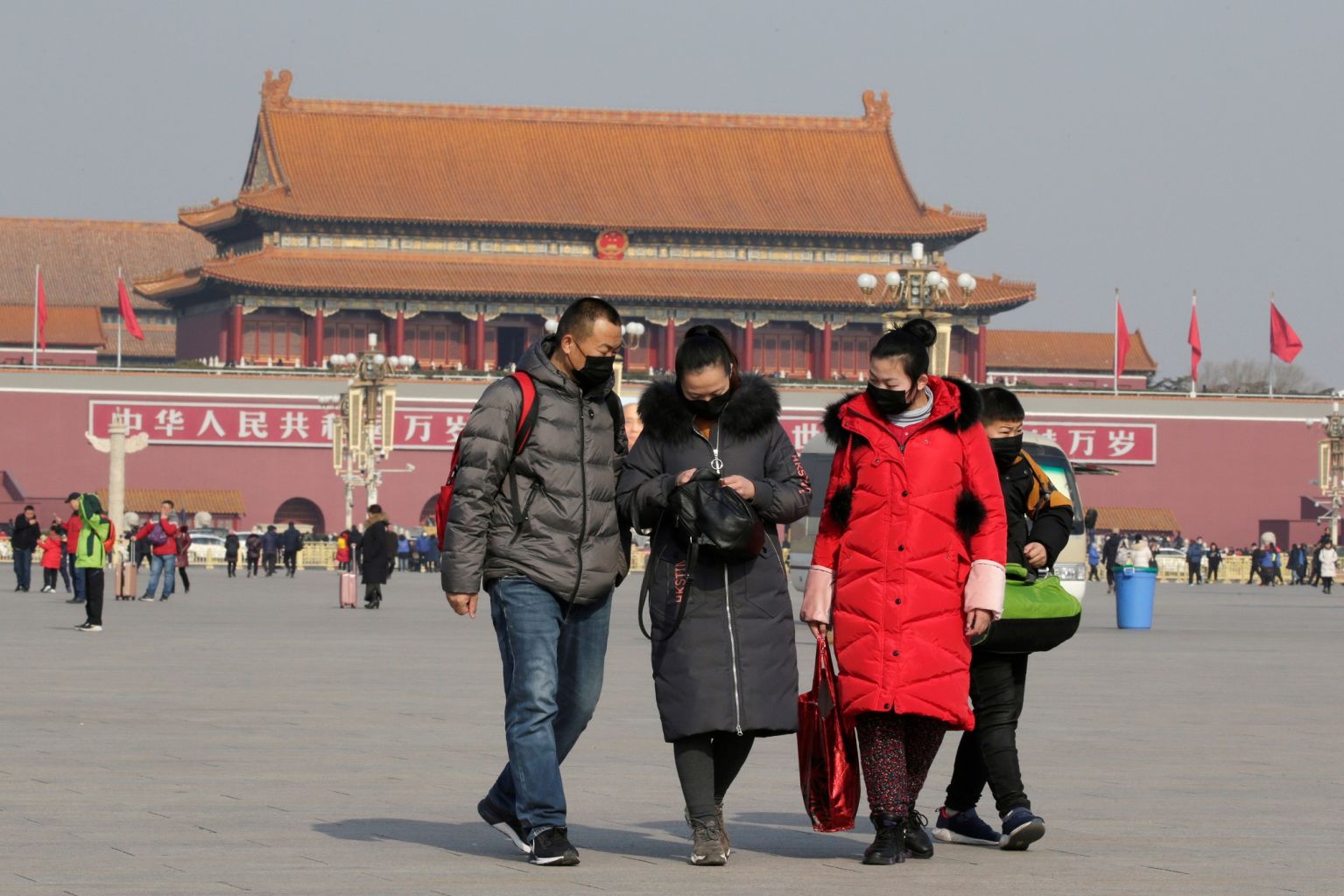 Tourists wearing masks visit Tiananmen Square in Beijing, Jan 22, 2020.