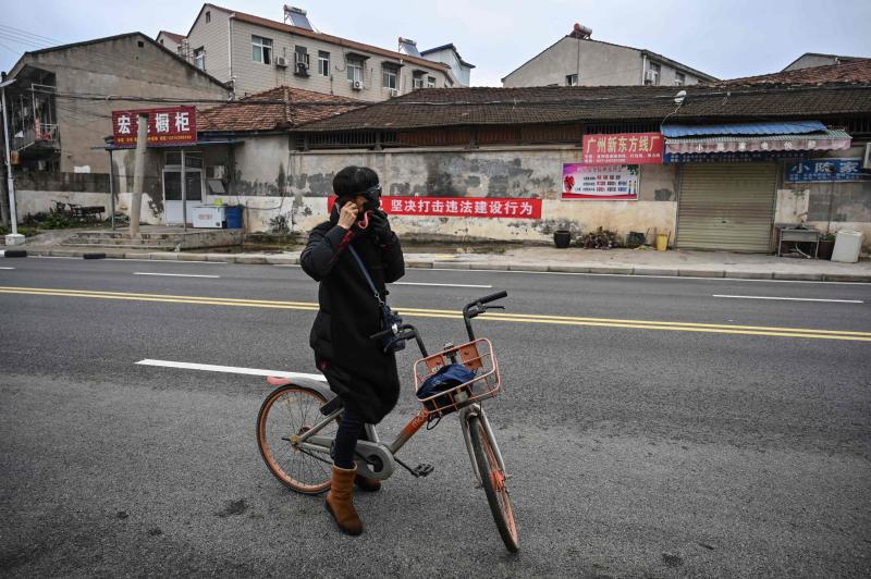 A woman puts a protective mask in a neighborhood on the outskirts of Wuhan, China, Jan 27, 2020.