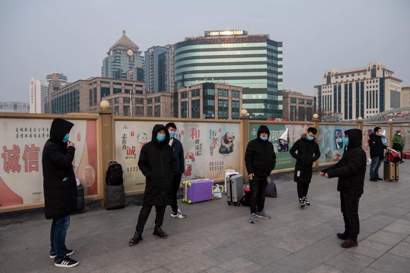 A photo taken on Jan 27, 2020, shows commuters at the Beijing railway station.