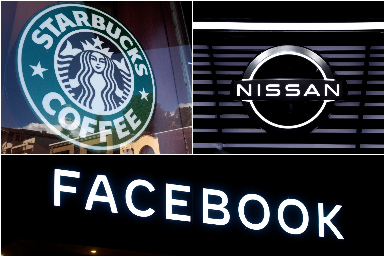 (Clockwise from top left) Starbucks, Nissan and Facebook.
