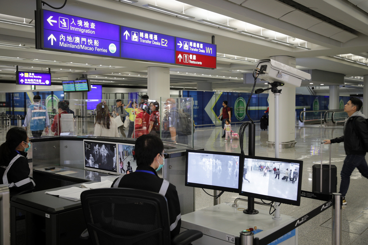 Health surveillance officers use temperature scanners to monitor passengers arriving at the Hong Kong International airport on Jan 4, 2020.