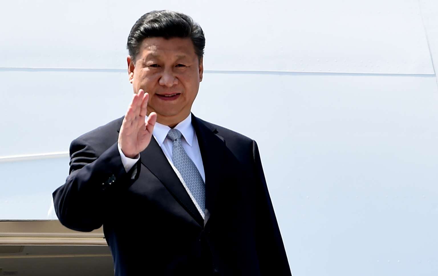 Chinese President, Xi Jinping gestures on his arrival at the airport in Goa on Oct 15, 2016.