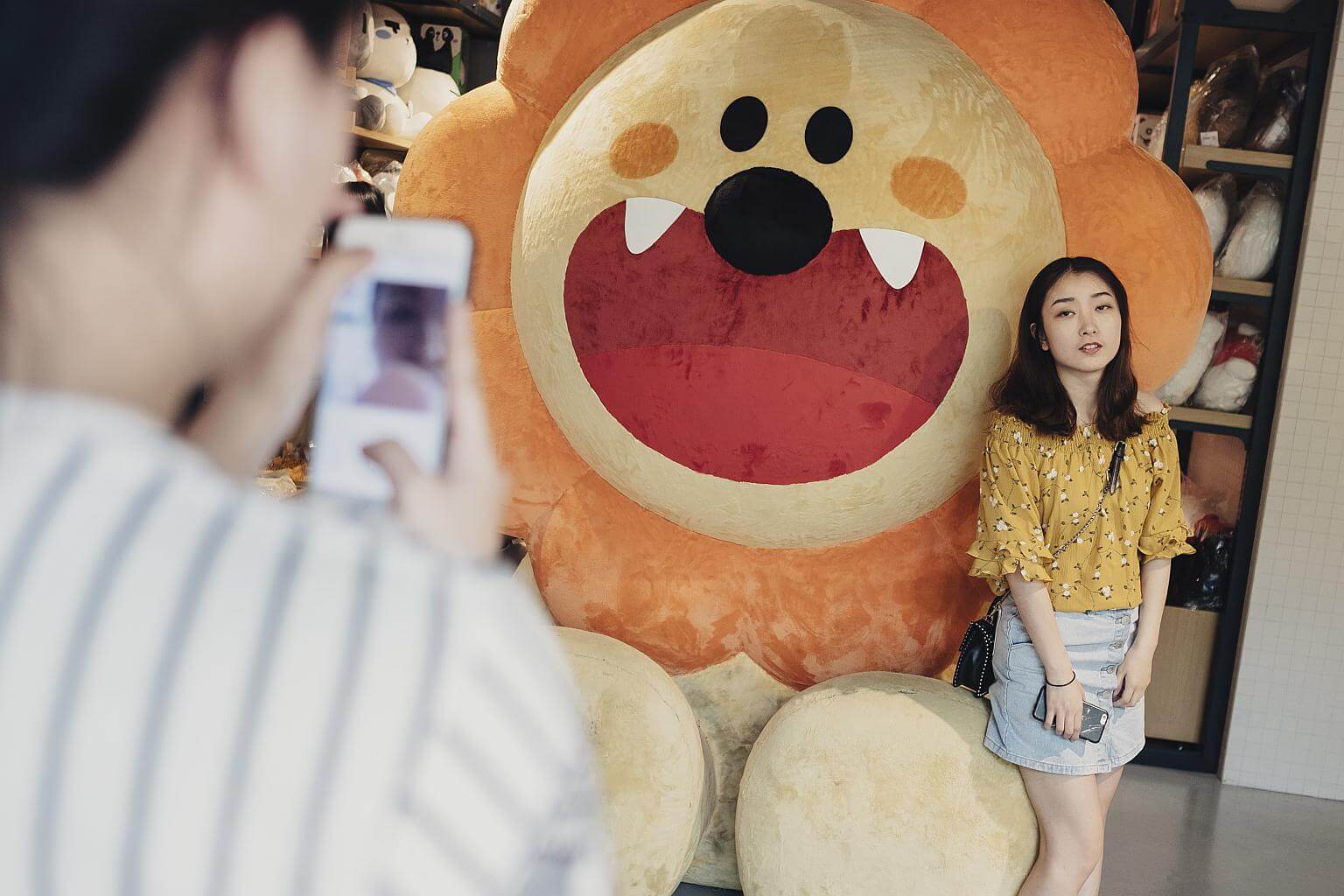 Women take photos at Uncle’s Friends Cafe & Store in Shanghai, where the menu offers cakes and decorations featuring Western astrological symbols, July 15, 2017.