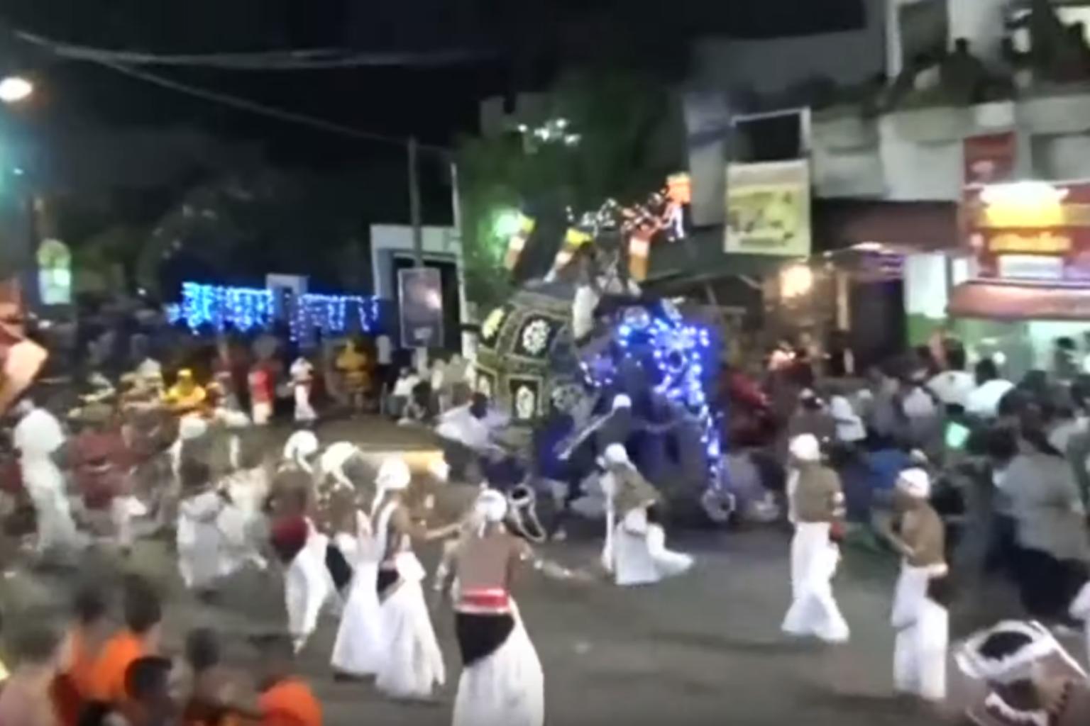 Privately owned Derana Television aired footage of Saturday night's pageant in Kotte, near Sri Lanka's capital. The procession begins after a government minister places a sacred relic on a decorated casket atop an elephant adorned with shiny red clothing.