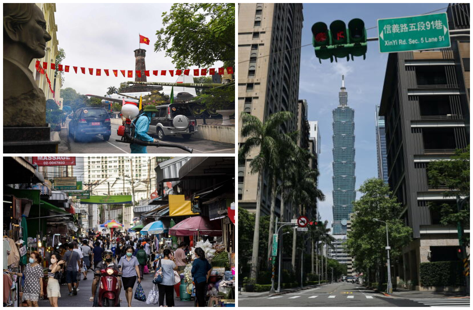 (Clockwise from top left) Vietnam, Taiwan and Thailand have been seeing a sudden surge in cases in recent weeks.