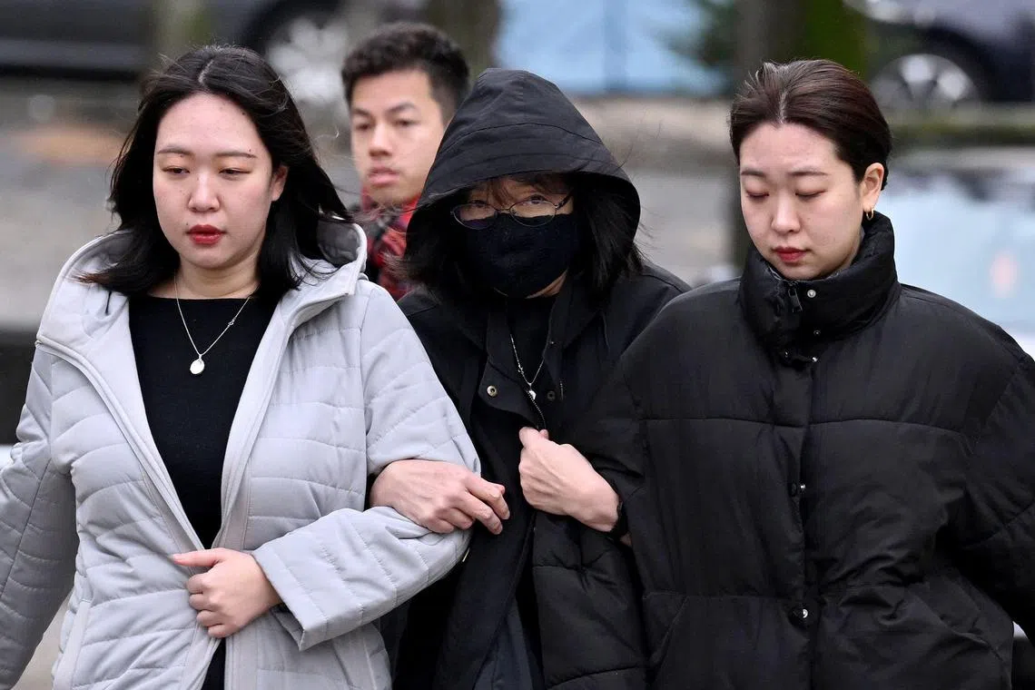 Ms Narumi Kurosaki’s mother, Mrs Taeko Kurosaki (centre), and boyfriend Arthur Del Piccolo (second from left) arrive at court with other family members.