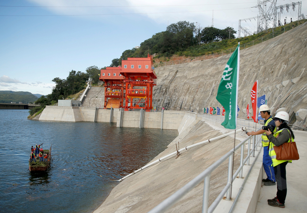 Workers from China's Sinohydro Corp are seen outside a hydro electric power plant in Kariba, Zimbabwe, on March 27, 2018.