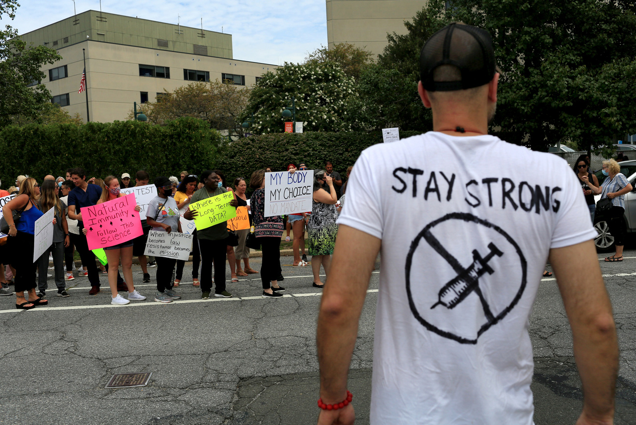 A protest against Covid-19 vaccination in New York on Aug 16, 2021.