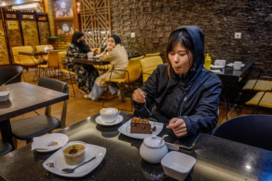 Ms Sakata tries the fare at a coffee shop she found on Google Maps that was close to her guest house in central Kabul, the capital of Afghanistan.