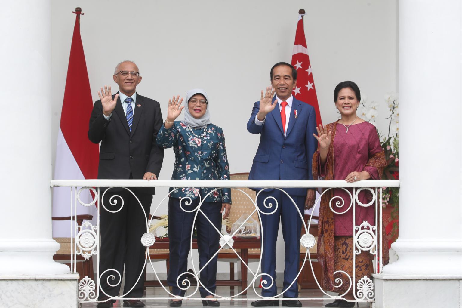 President Halimah Yacob and her husband, Mr Mohamed Abdullah Alhabshee, with Indonesian President Joko Widodo and First Lady Iriana Joko Widodo at the Istana in Bogor, Indonesia, on Feb 4, 2020. Madam Halimah is on a four-day state visit to Indonesia.