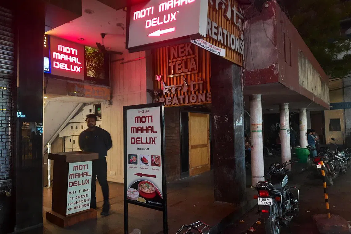 The exterior of one of the Moti Mahal Delux restaurants in Delhi.