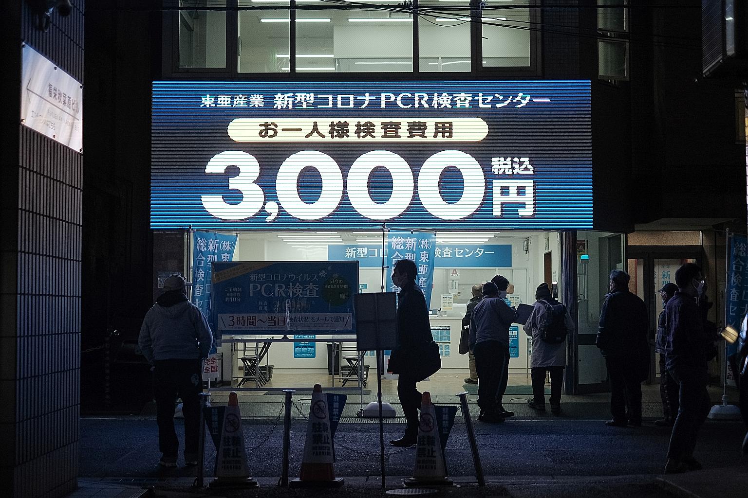 Customers waiting outside a coronavirus testing site in the Akihabara shopping district of Tokyo on Wednesday. Tokyo registered 270 new cases yesterday, down from 353 a week earlier.