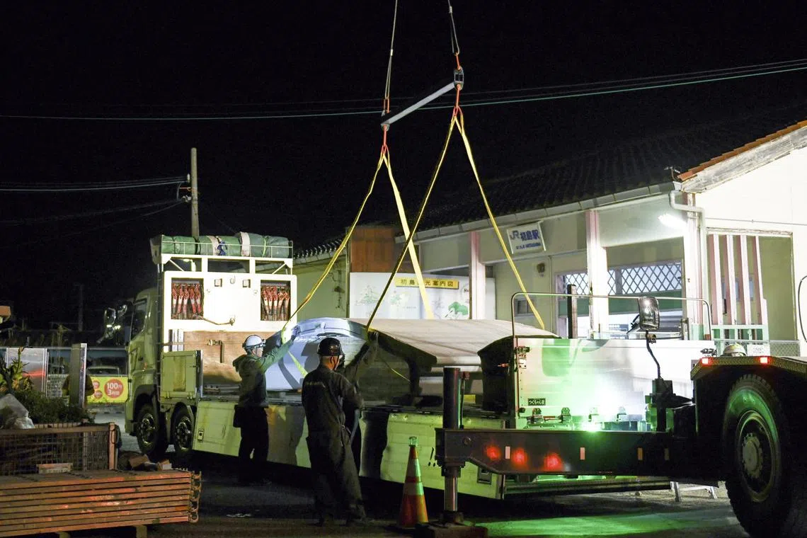 The assembly process began after the last train left the station in Arita in Wakayama region around midnight, and everything was done before the first train arrived at around 5am local time.