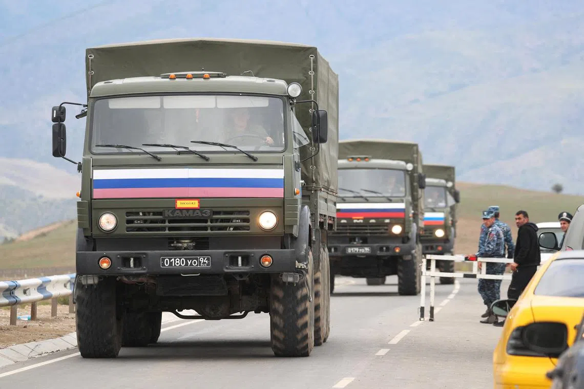 Russian peacekeepers leaving the Nagorno-Karabakh region for Armenia on Sept 22.