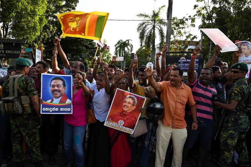 Supporters of Sri Lanka's new President Gotabaya Rajapaksa celebrate in Colombo on Nov 17, 2019.