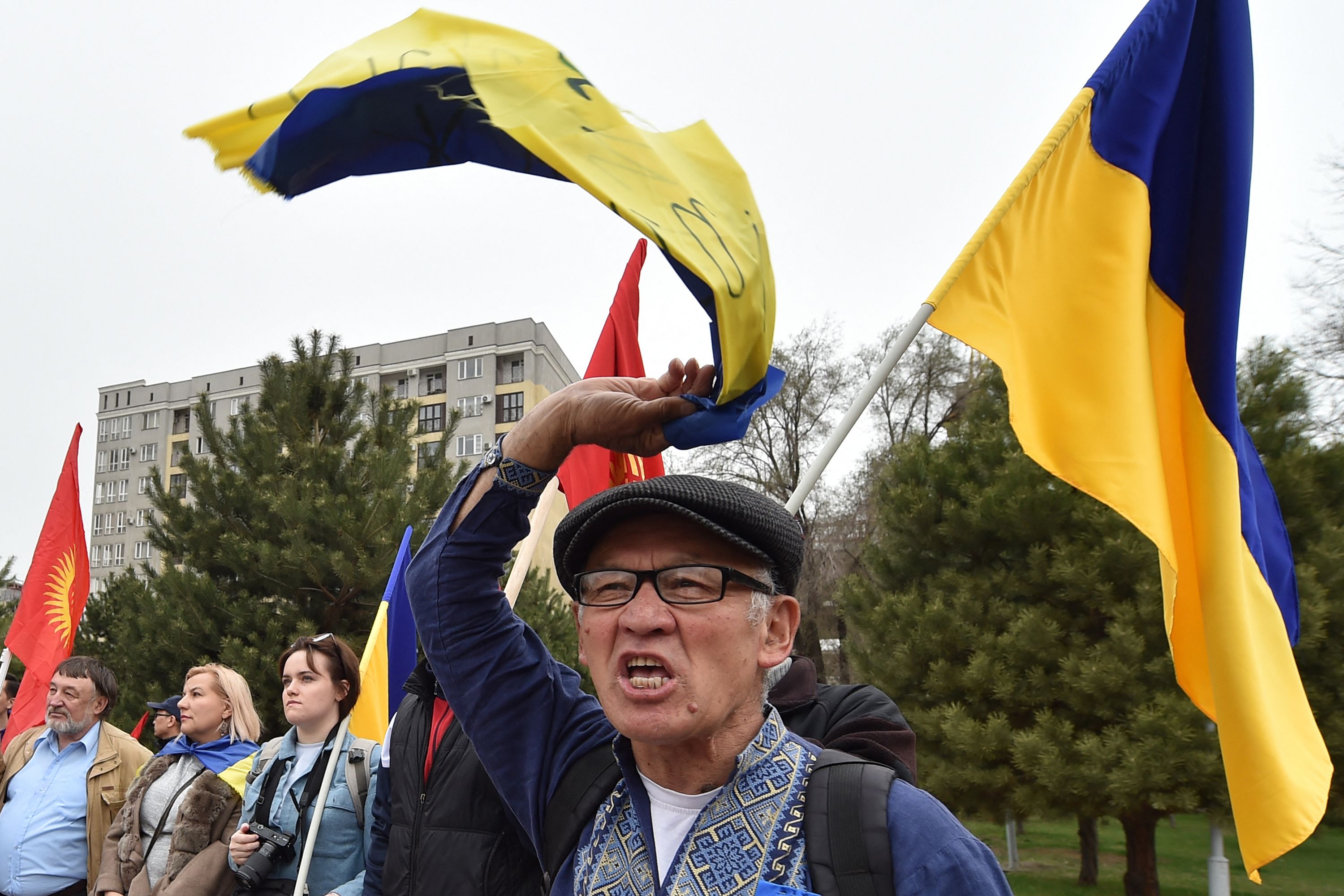 The arrests in the capital Bishkek come as the gruelling conflict fuels pro- and anti-Moscow sentiment in ex-Soviet Central Asia, a five-country region tightly-tied to Russia.