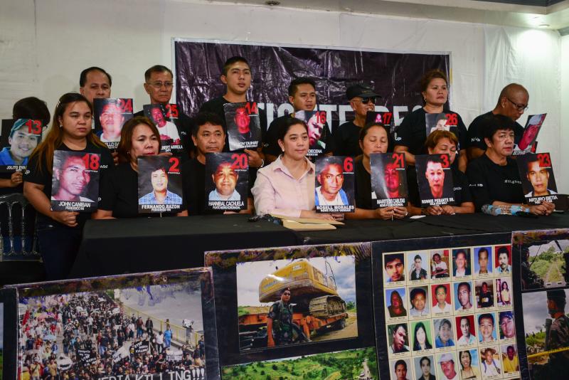 Relatives and supporters of victims of the 2009 Maguindanao massacre hold pictures of the victims during a press conference after the verdict in the case in Manila on Dec 19, 2019.