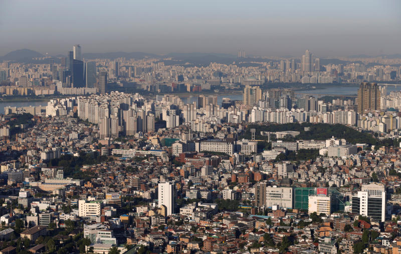 The skyline of central Seoul seen during sunrise in Seoul, South Korea, on Sept 2, 2013.