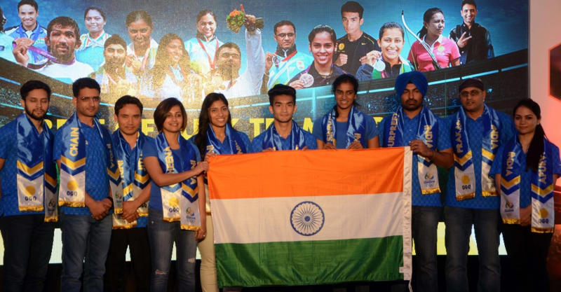 Indian athletes Parupalli Kashyap, Chain Singh, Jitu Rai, Heena Sidhu, Ayonika Paul, Shiva Thapa, PV Sindhu, Gurpreet Singh, P Nanjappa and A Chandela during a press conference organised before the Rio Olympics in Mumbai on May 30, 2016.