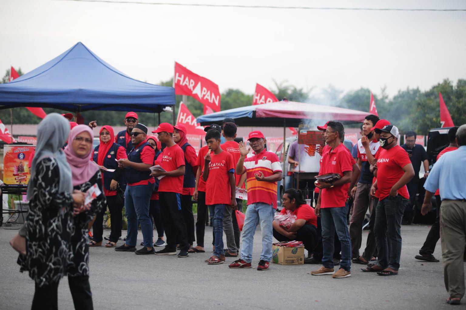 In a photo taken on Nov 14, 2019, Pakatan Harapan supporters are seen at Kukup night market.