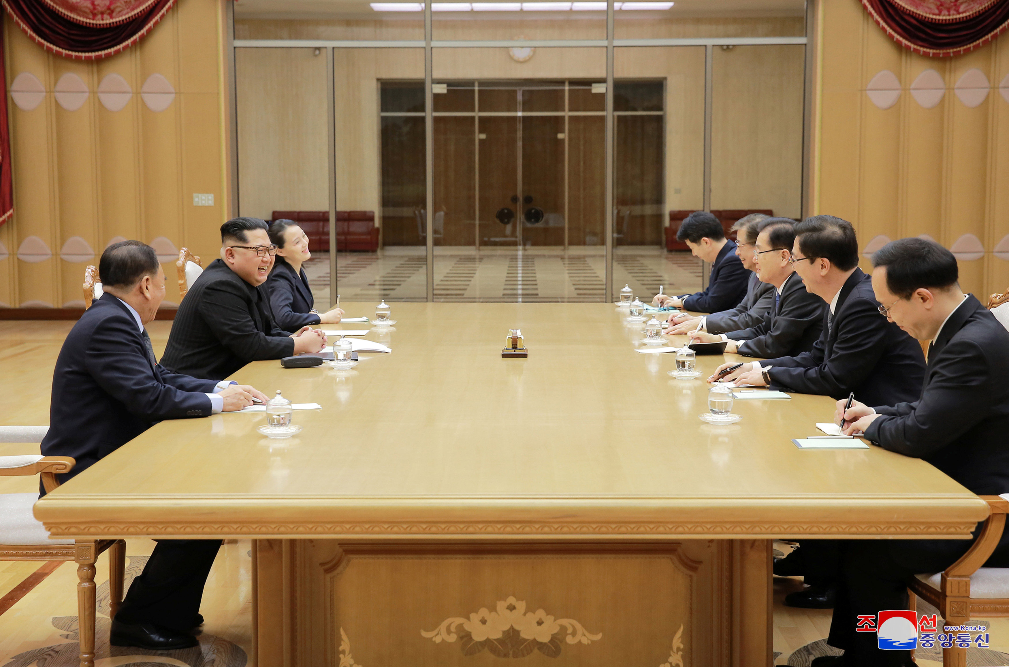 Seoul's delegation met Kim Jong Un, his sister Kim Yo Jong, Kim Jong Un's wife and other officials on Monday, said Kim Eui Kyeom, a spokesman for the South's presidential office. Ms Kim Yo Jong attended the Winter Olympics opening ceremony last month.
