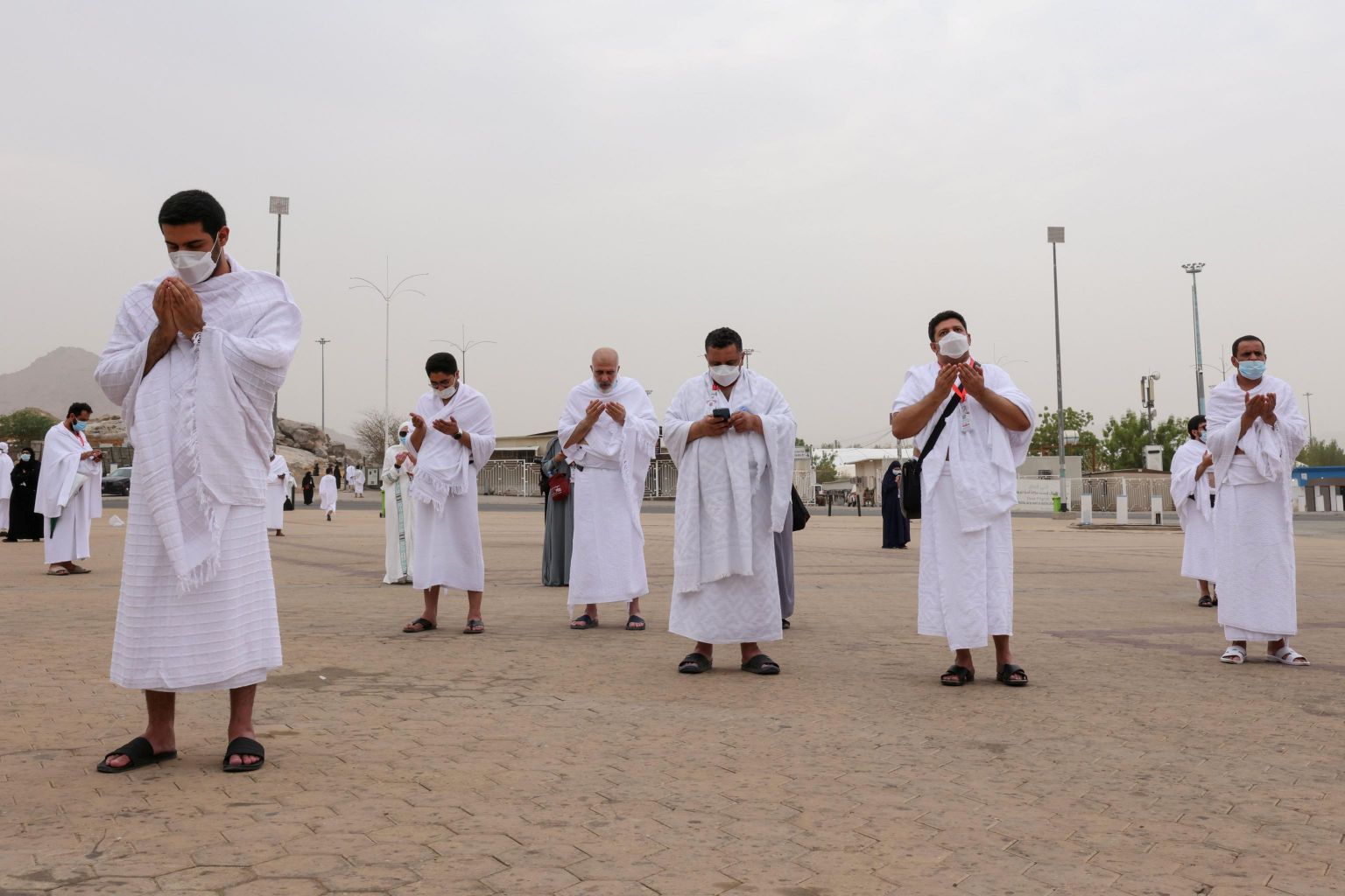 Muslim pilgrims pray at the plain of Arafat during the annual haj pilgrimage, outside the holy city of Mecca, on July 19, 2021.