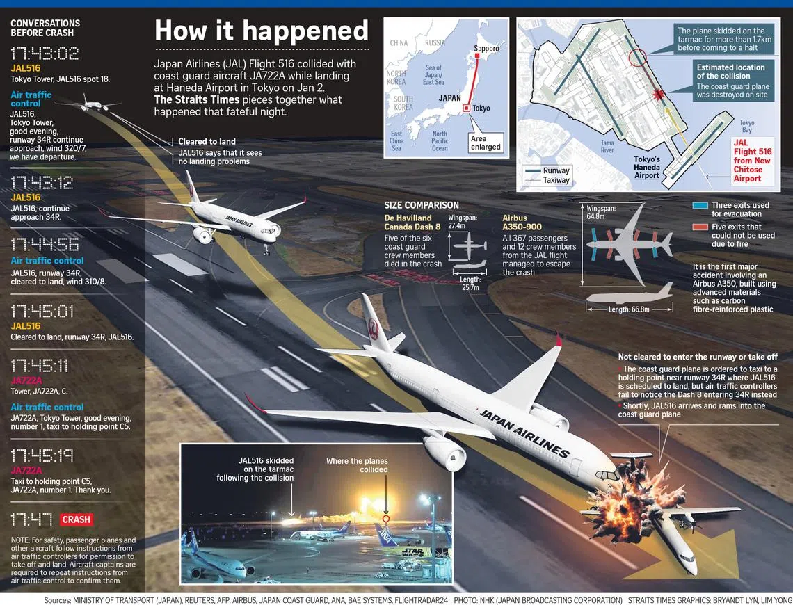 In a statement on Jan 3, JAL said its aircraft received and repeated the landing permission from air traffic control before approaching and touching down.