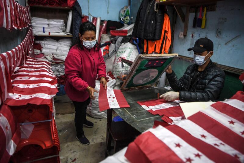 But for printing shop owner Umesh Babu Shrestha, the crisis has brought a welcome boom in orders after he was unable to pay his rent for nine months because the coronavirus pandemic dried up business.