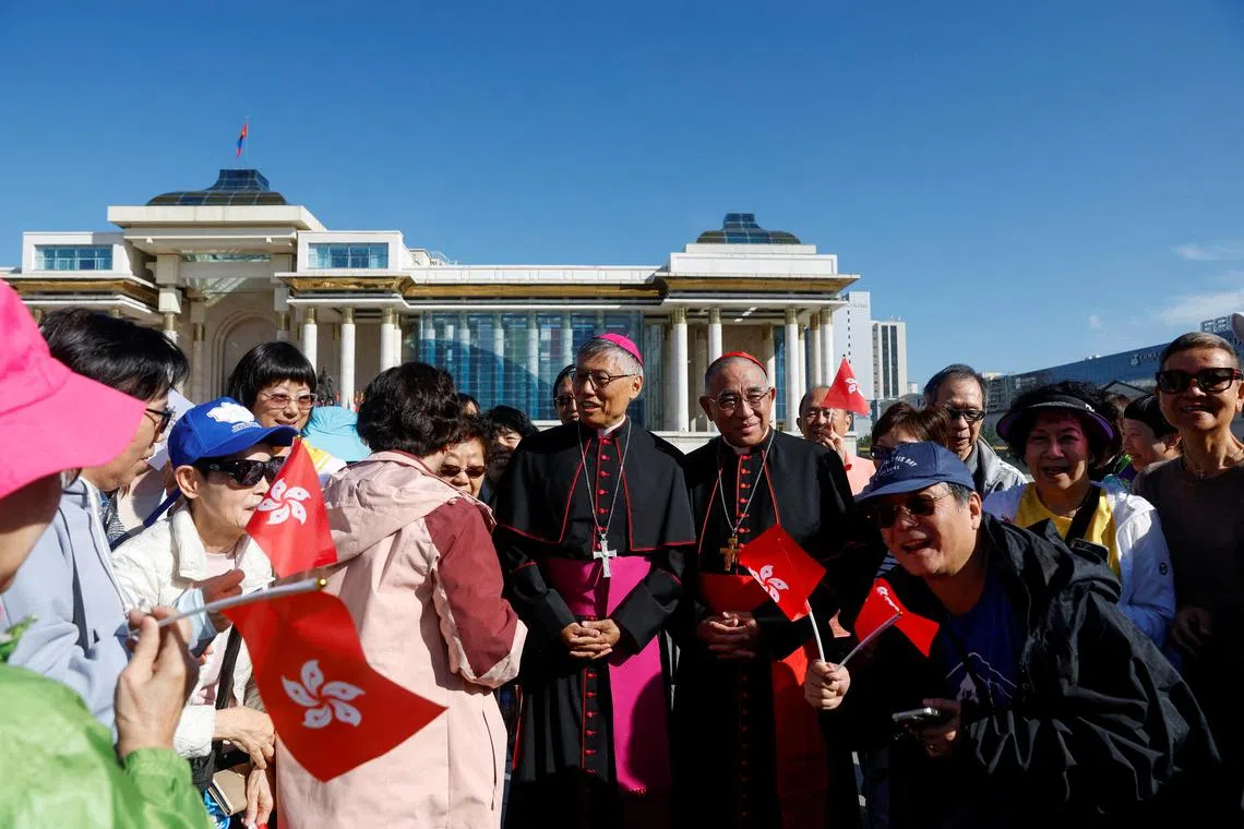 Bishop of Hong Kong Stephen Chow and Archbishop of Bangkok Cardinal Francis Kriengsak Kovitvanit stand at Sukhbaatar Square on Sept 2.