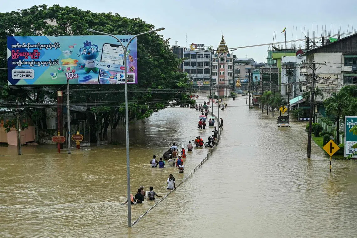 “I didn’t expect this level of water here,” Mr Chit Nyunt, 69, told AFP as he waded down the street holding a pair of sandals and an umbrella.