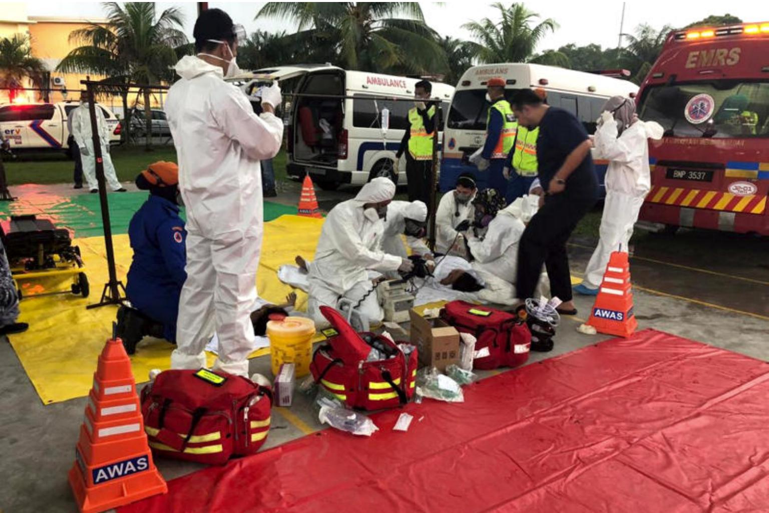 JOHOR BARU - About 15 students from a religious school in Pasir Gudang district in Johor suffered breathing difficulties and vomiting, possibly due to exposure to poisonous gas on Thursday (June 20).