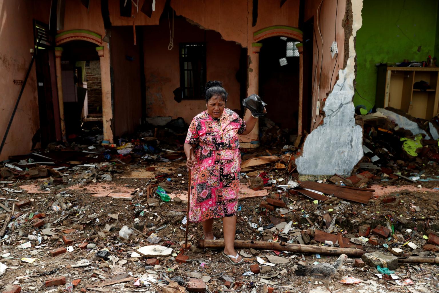 A woman walks among debris at an area affected by the tsunami in Labuhan, Banten province, Indonesia, Dec 27, 2018.
