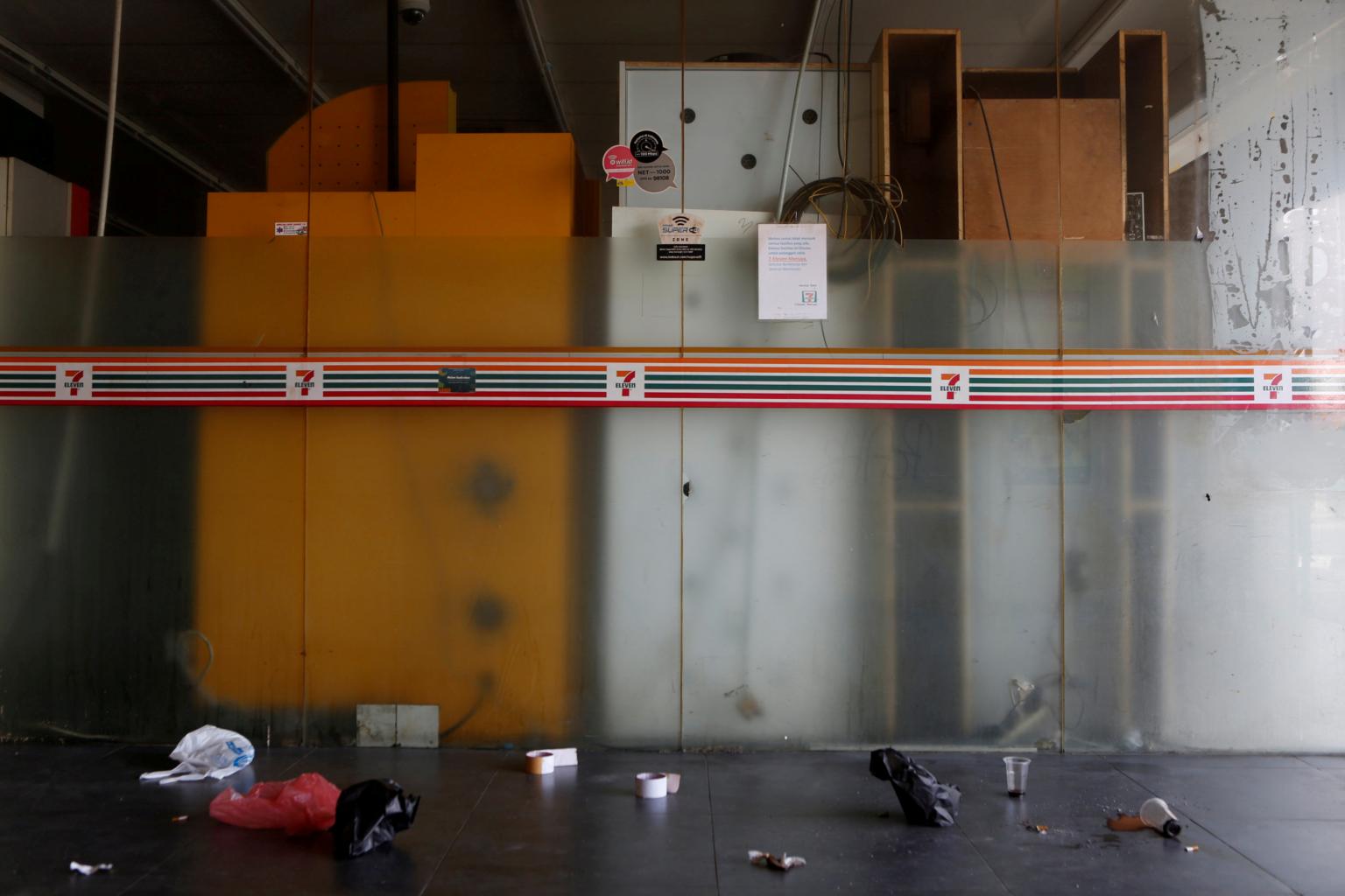 A view inside an empty 7-Eleven convenience store is seen in Jakarta.