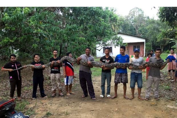 "Five firemen in a lorry were dispatched and arrived 15 minutes later. When we got there, the villagers had already caught the python," Sharol said, adding that the snake weighed about 80kg.