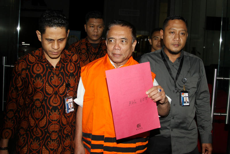 The governor of Indonesia's Aceh province Irwandi Yusuf is seen following his arrest by the country's anti-corruption agency at Corruption Eradication Commission building in Jakarta on June 5, 2018.