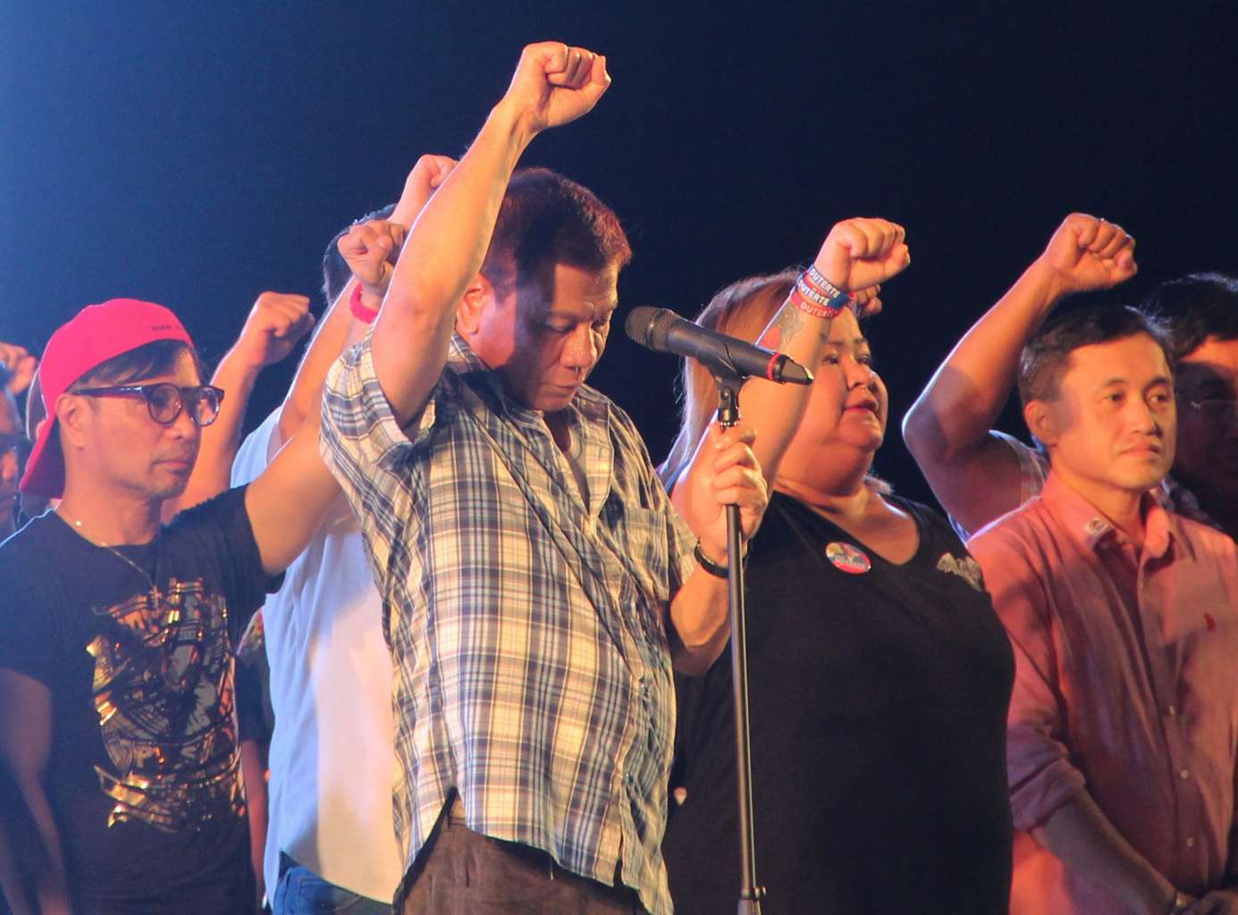 Philippine president-elect Rodrigo Duterte (centre) speaks to supporters during a thanksgiving party at a park in Davao City on June 4, 2016.
