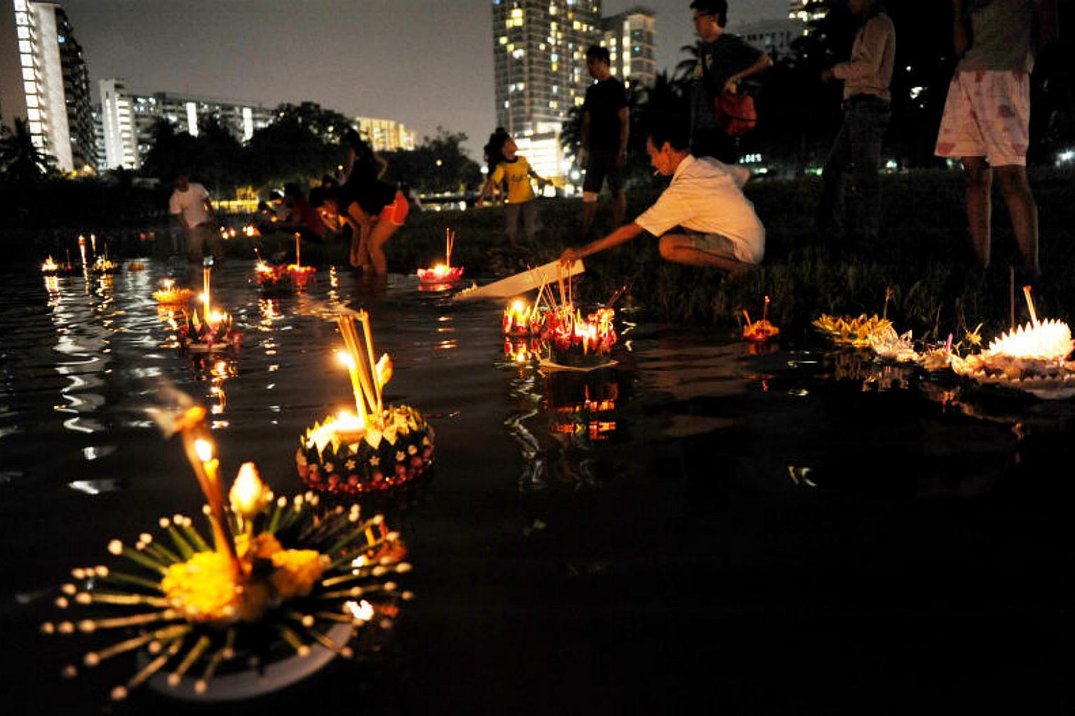BANGKOK (REUTERS) - People in Thailand celebrated the Loy Krathong or "floating basket" festival on Friday (Nov 3), following a year of mourning for late King Bhumibol Adulyadej that saw many celebrations muted or cancelled.