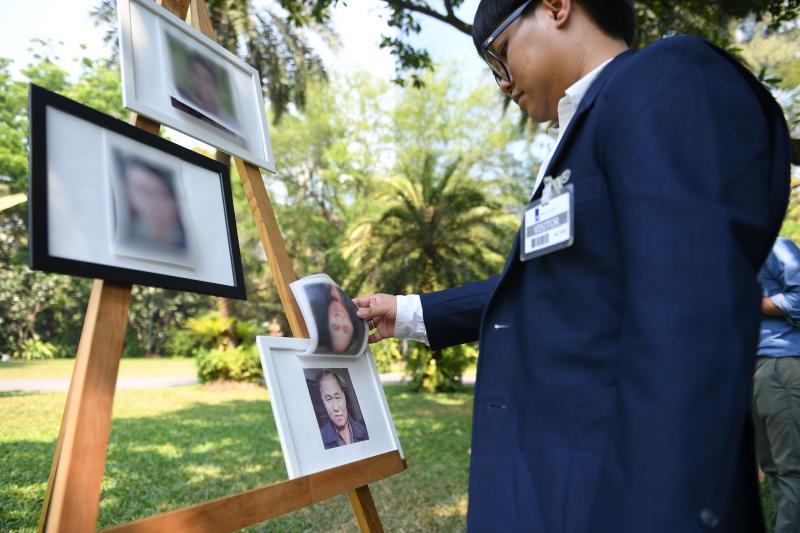 A portrait of missing Thai activist Surachai Danwattananusorn at a human rights forum at the Netherlands Embassy in Bangkok on March 12, 2019. The badly mutilated bodies of Mr Surachai's aides had been found in the Mekong River in December 2018.