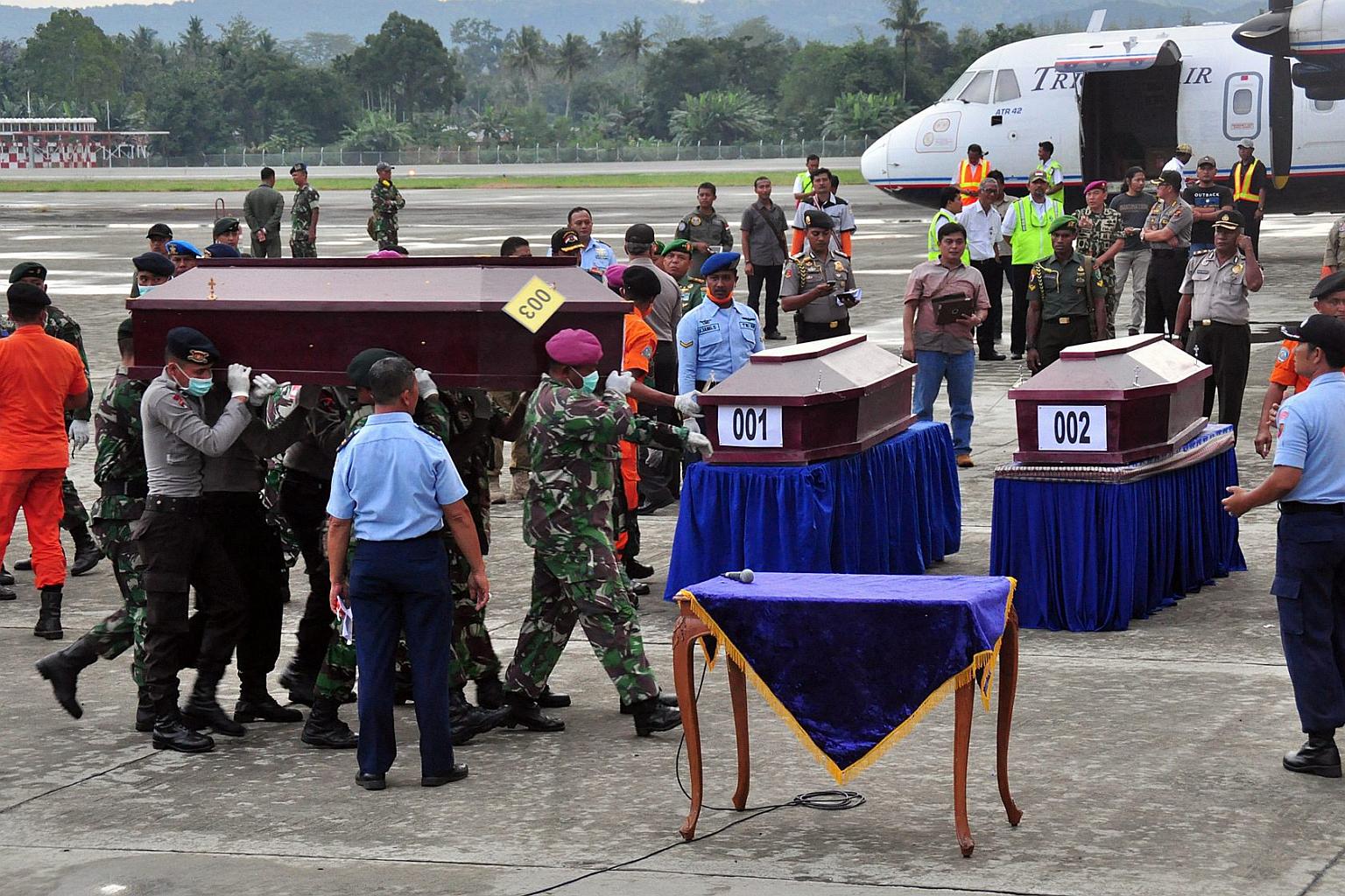 Authorities had initially hoped to use helicopters to transport the remains of Sunday's crash from the site in Papua province, but bad weather meant the bodies had to be carried on foot out of the jungle.